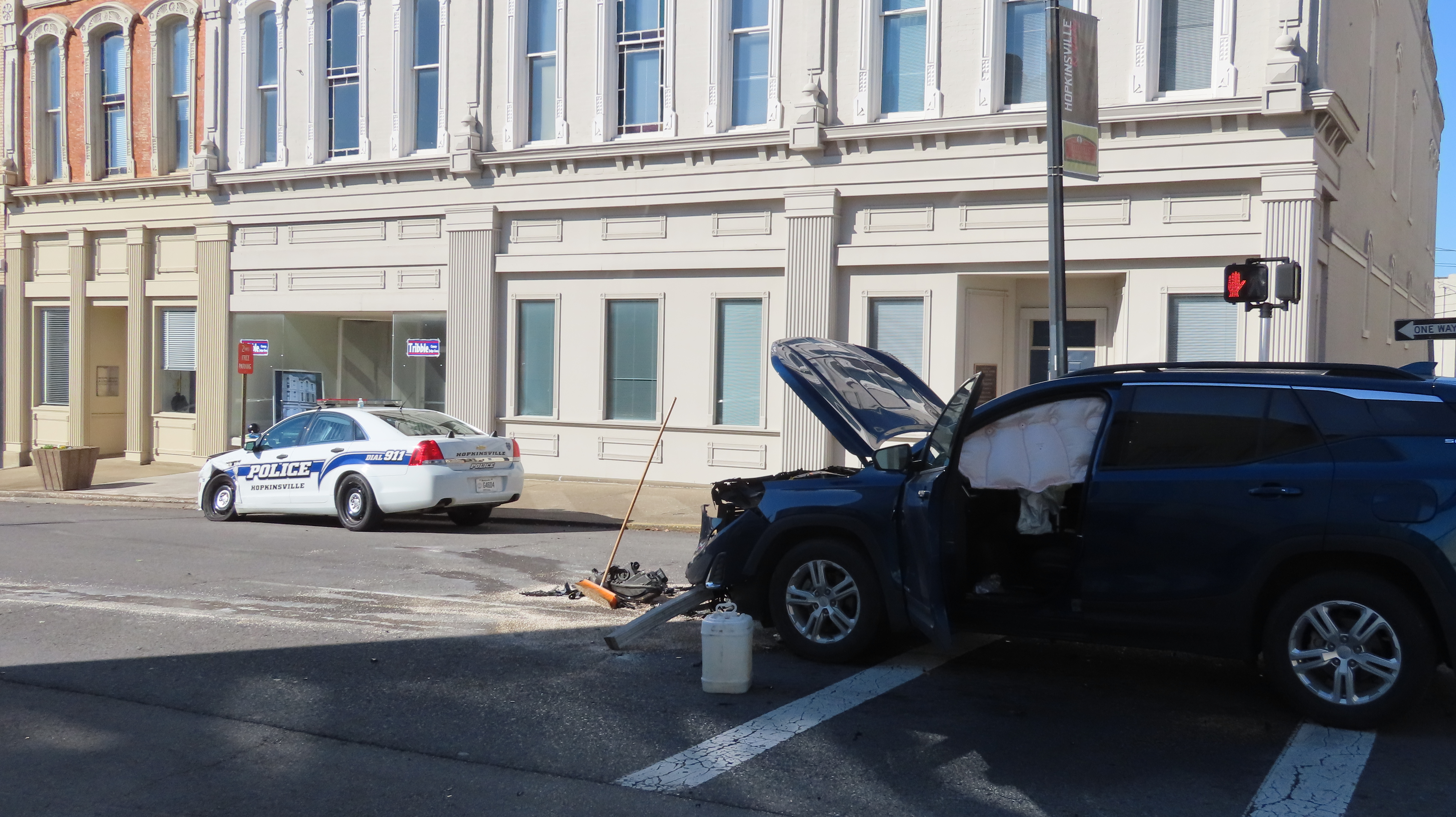Hopkinsville Police say Officer Larry Johnston was southbound on South Main Street looking at a call he was responding to when he didn’t notice the light change to red at the intersection of East 7th Street.