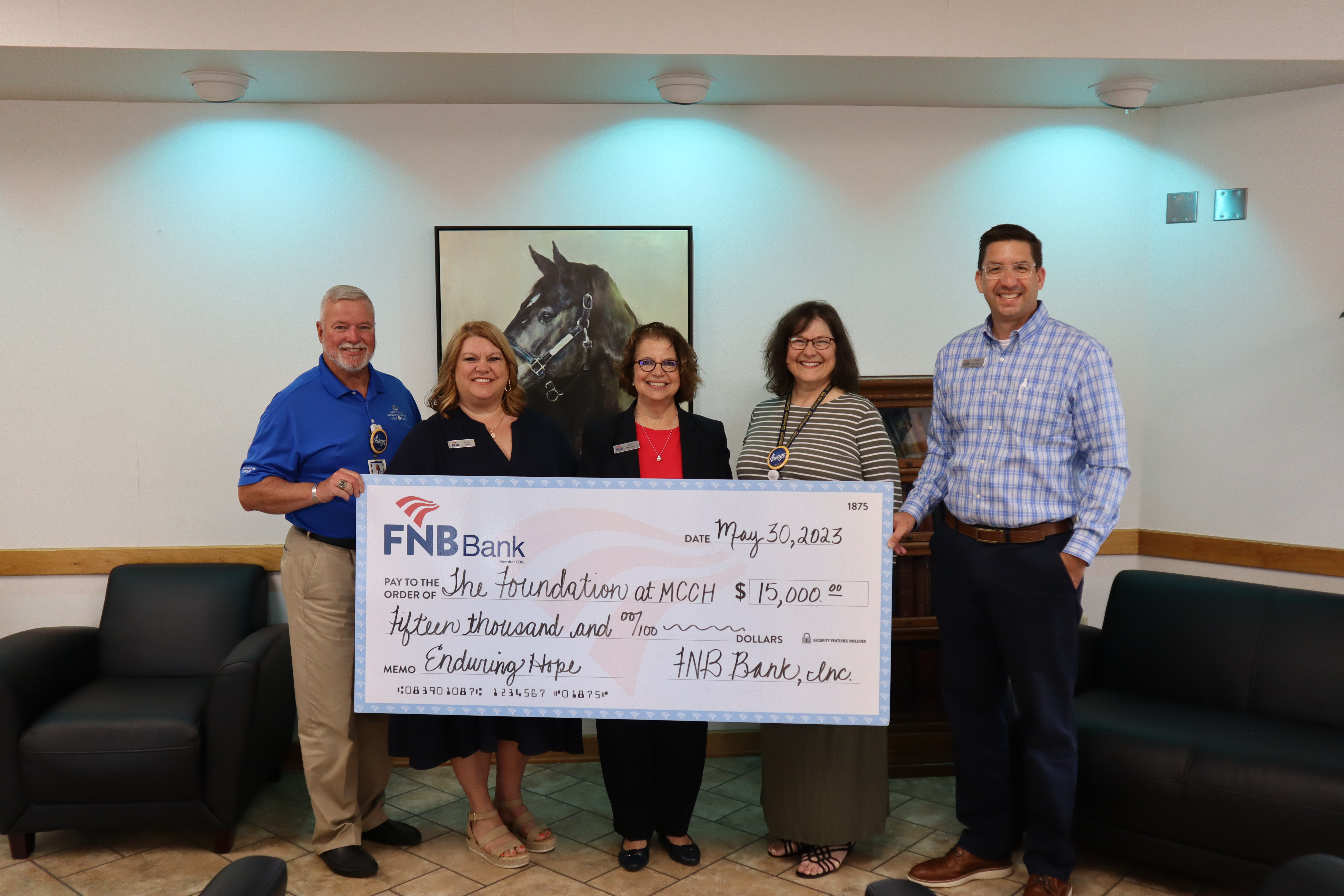 Meanwhile, as part of the donation to MCCH, FNB officials will be naming the Radiation Clinic Nursing Station. The new Regional Cancer Center is a $15 million project, covering 17,954 square feet. It will provide detection, diagnosis, and care services all under one roof.