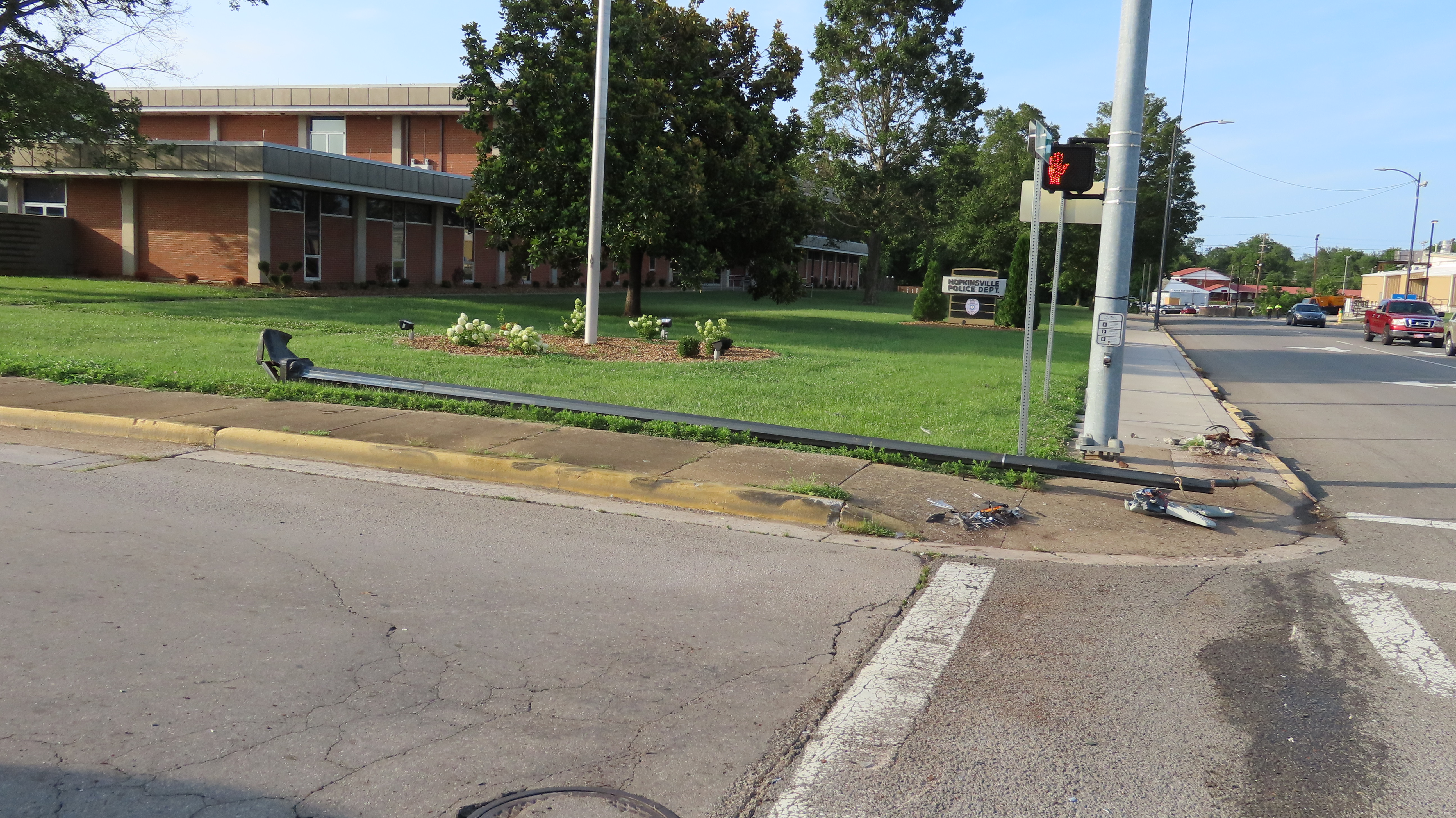Hopkinsville Police say just before 6 pm a car was southbound in front of the Hopkinsville Police Department when it ran off the road and hit a light pole.