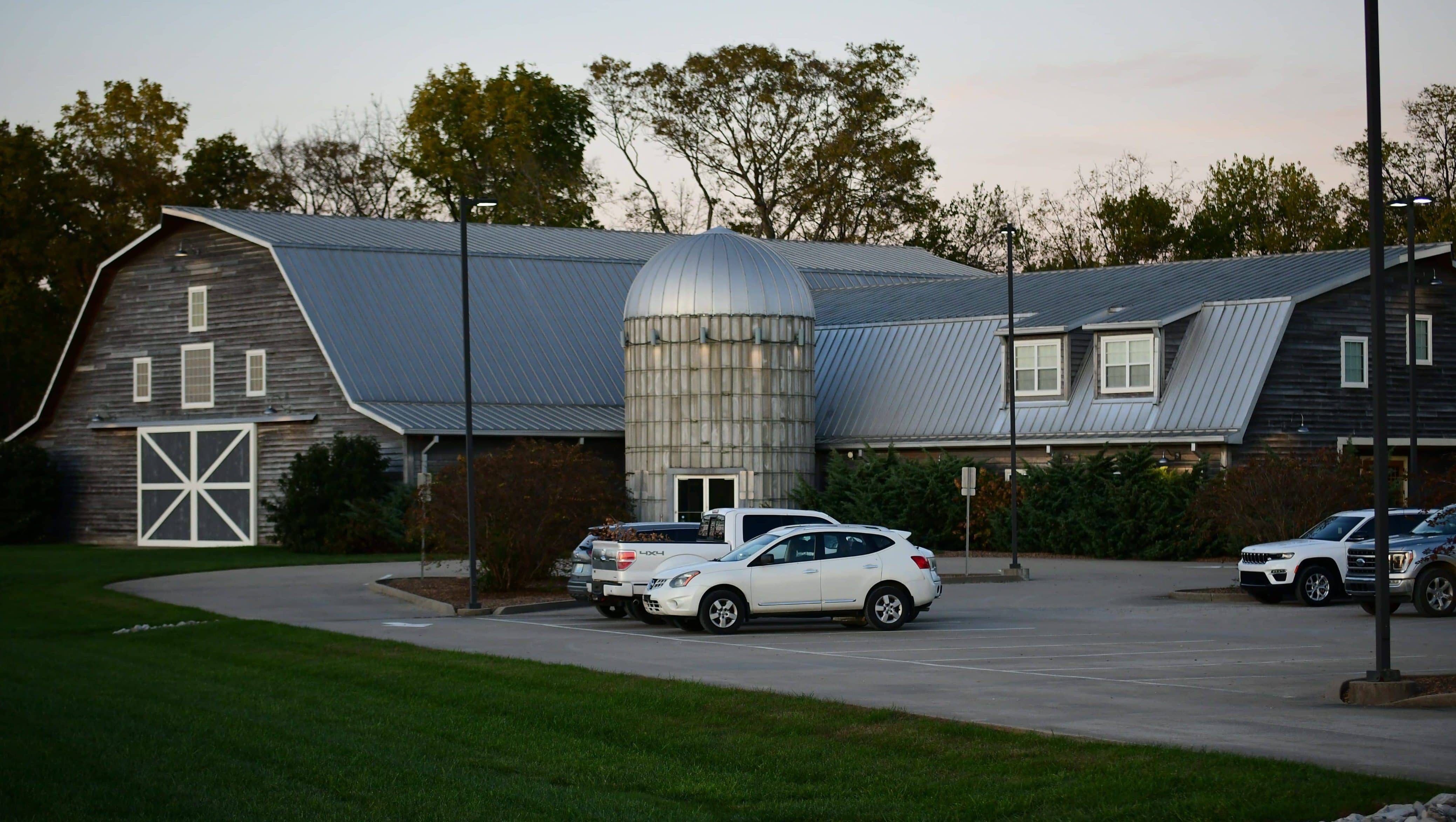 click to download audioThe building and silo were designed by architect Chris Spur and modeled after a dairy barn.