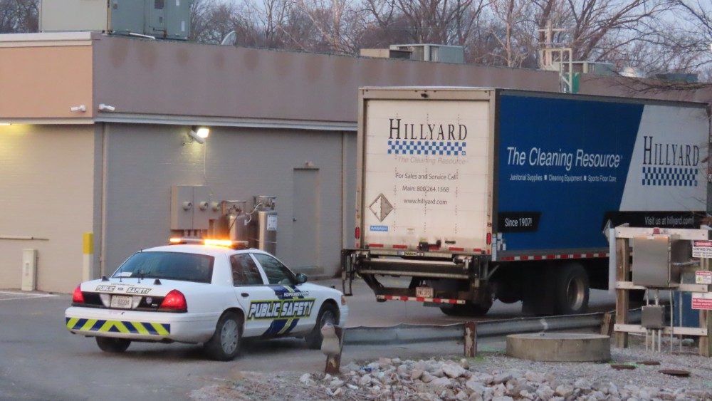 Hopkinsville EMS took the driver of the box truck to Jennie Stuart Health for treatment.