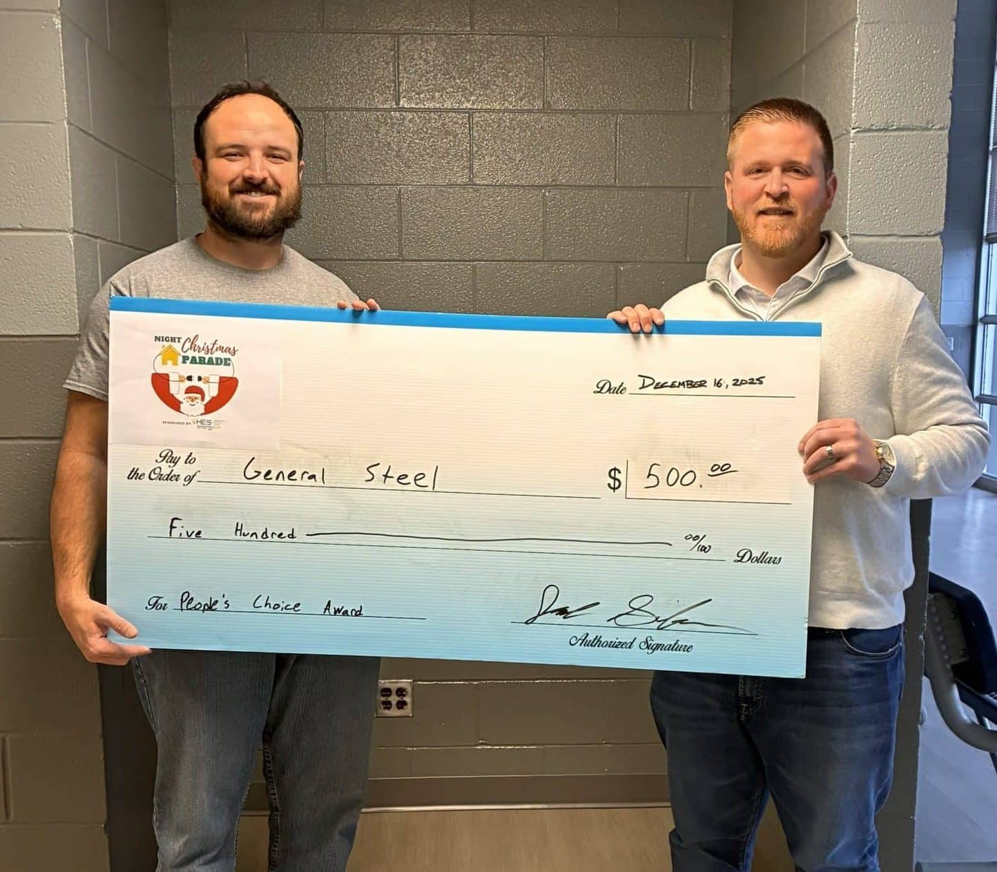 General Steel was presented with a $500 winning check from the Hopkinsville Parks and Recreation Department. General Steel received 27% of the vote through the web-based contest. They also received the ‘Spirit Award’ at Saturday’s parade.