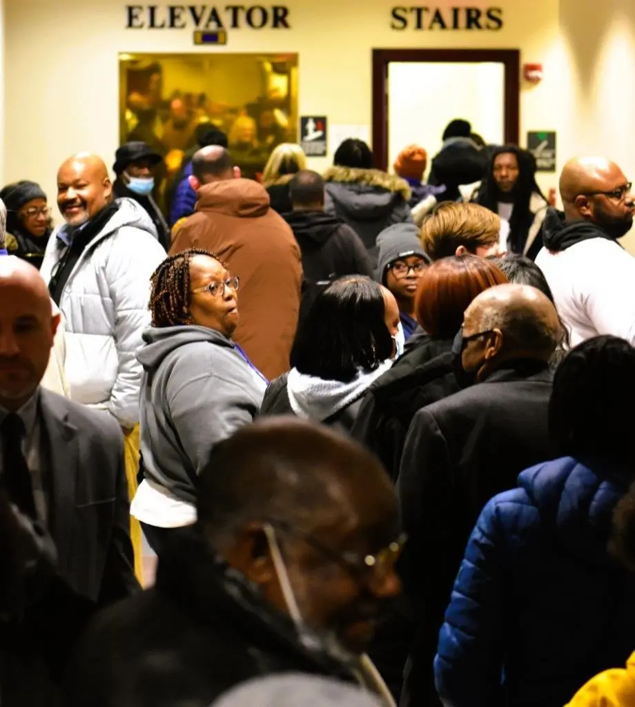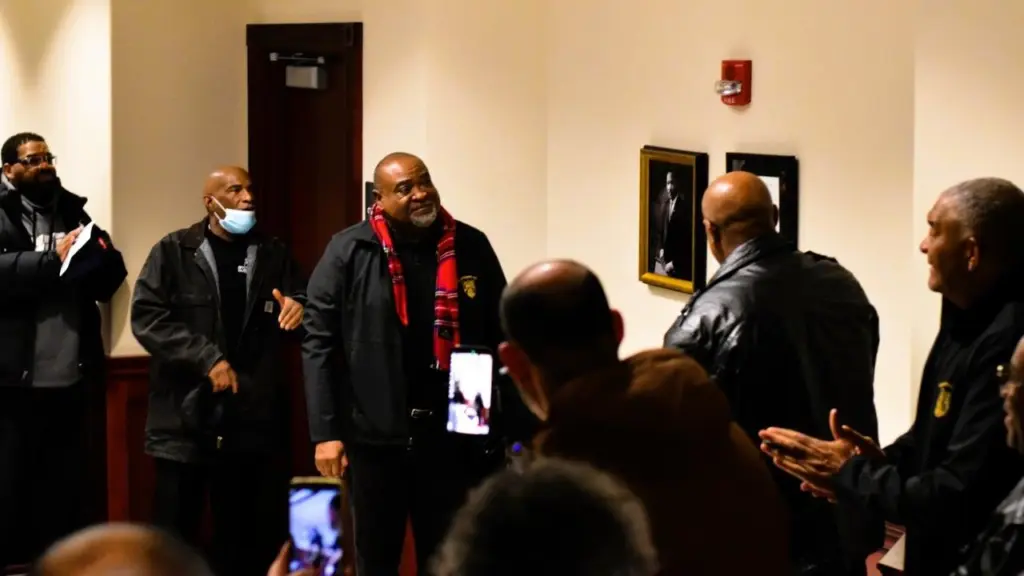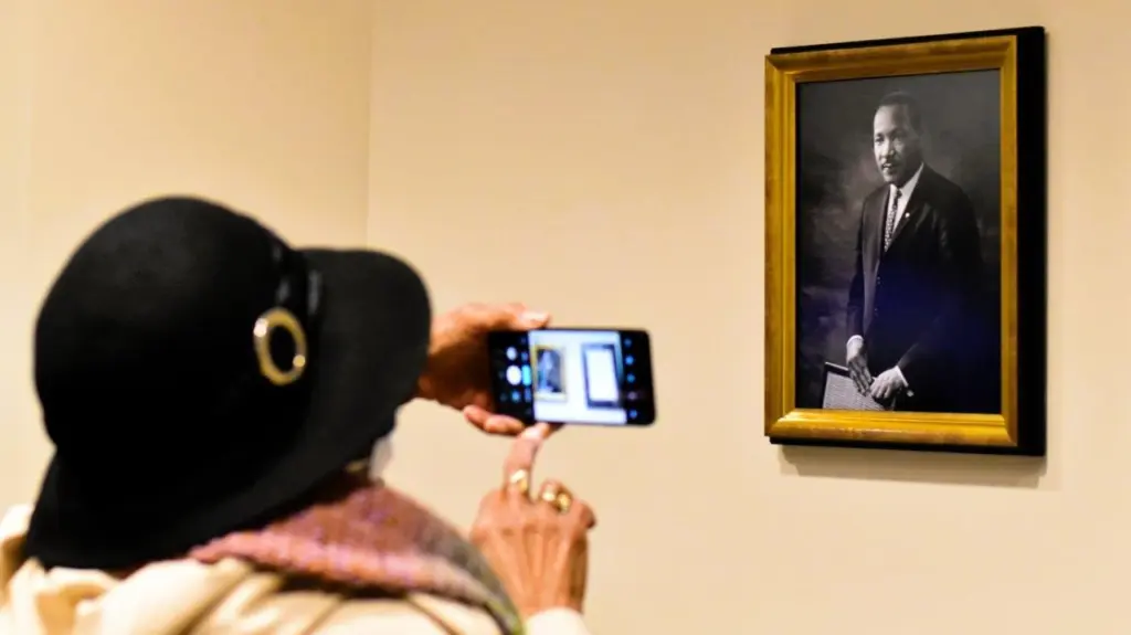 Before taking a faith walk up Jefferson Street and to the church, the group paused for the revelation of King’s portrait — which now hangs just outside the second-floor courtroom in the Justice Center.