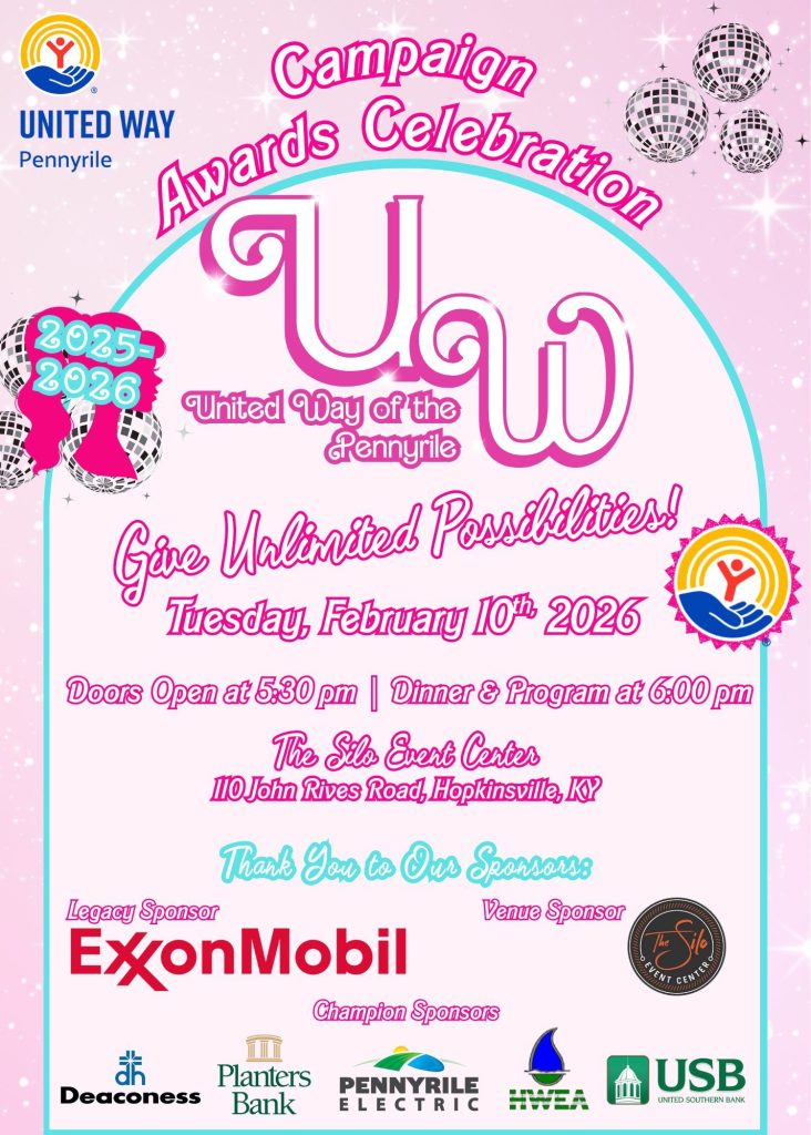 click to download audioUnited Way of the Pennyrile’s campaign award celebration takes place February 10th at the Silo Events Center, with doors opening at 5:30 p.m.