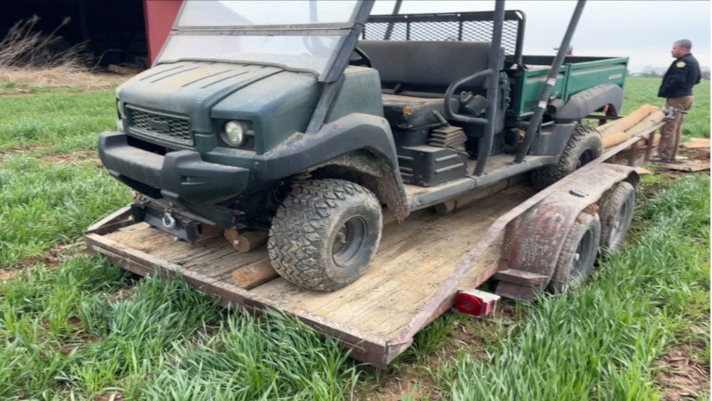 Trigg County Sheriff’s deputies say they were called for a burglary in progress with someone using a trailer attached to a truck to remove a Kawasaki Mule 4010, cedar posts, a fuel tank, and other items from a barn.