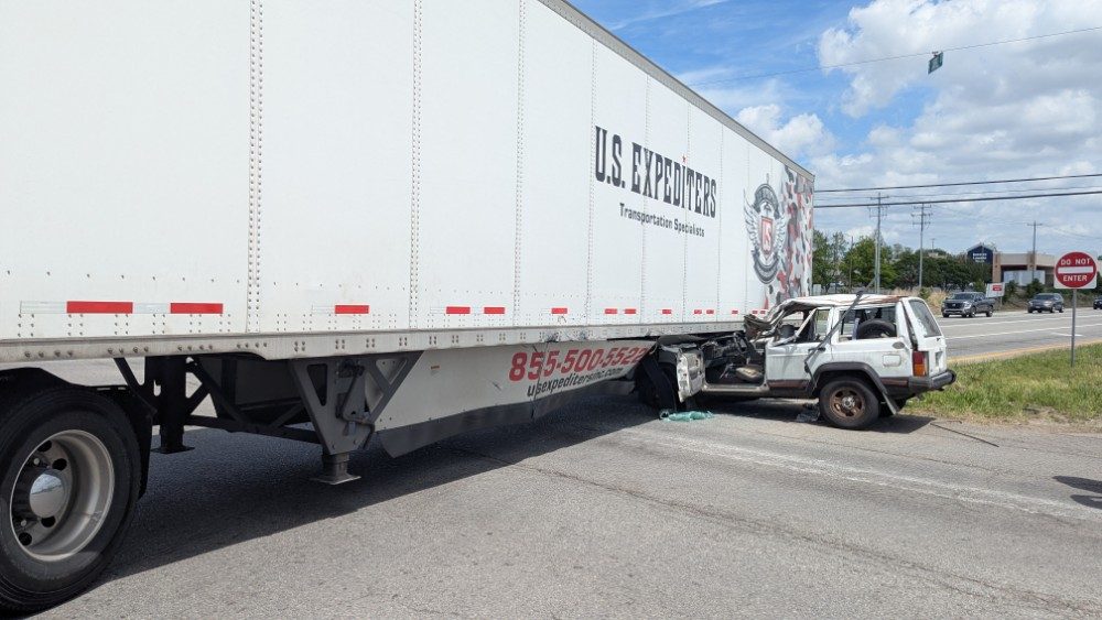 Hopkinsville Police say just before 1:00 p.m., an SUV driven by 68-year-old James Barrow of Clarksville collided with a tractor-trailer driven by 33-year-old Trevor Crosby of Atlanta, Georgia, trapping Barrow underneath the tractor-trailer.
