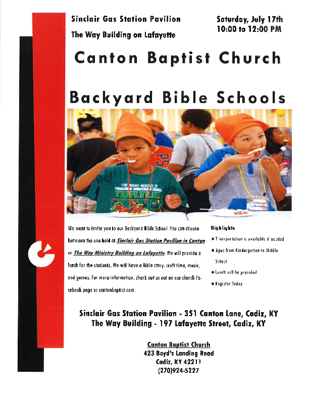 Pastor Brad Chalfin and of Canton Baptist Church are hosting Back Yard Bible Clubs at a couple of locations, including The Way and a “Street Hockey Exhibition also at The Way.