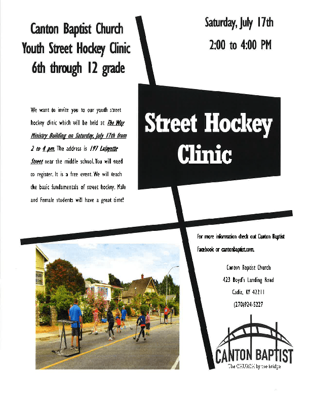 Pastor Brad Chalfin and of Canton Baptist Church are hosting Back Yard Bible Clubs at a couple of locations, including The Way and a “Street Hockey Exhibition also at The Way.