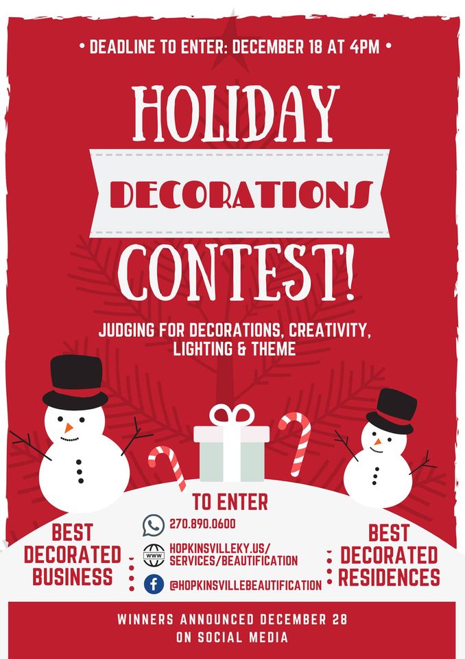 The goal of the Holiday Decorations Contest is to recognize the efforts of Hopkinsville residents and businesses that encourage community pride and holiday spirit.