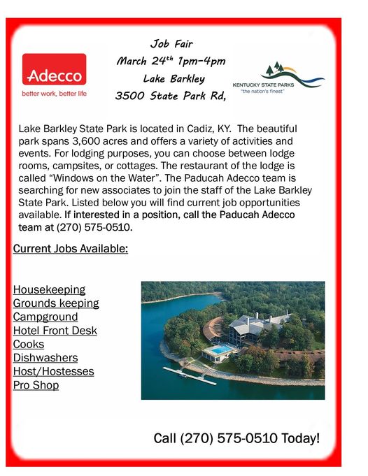 Job Fair March 24th – Lake Barkley State Resort Park.