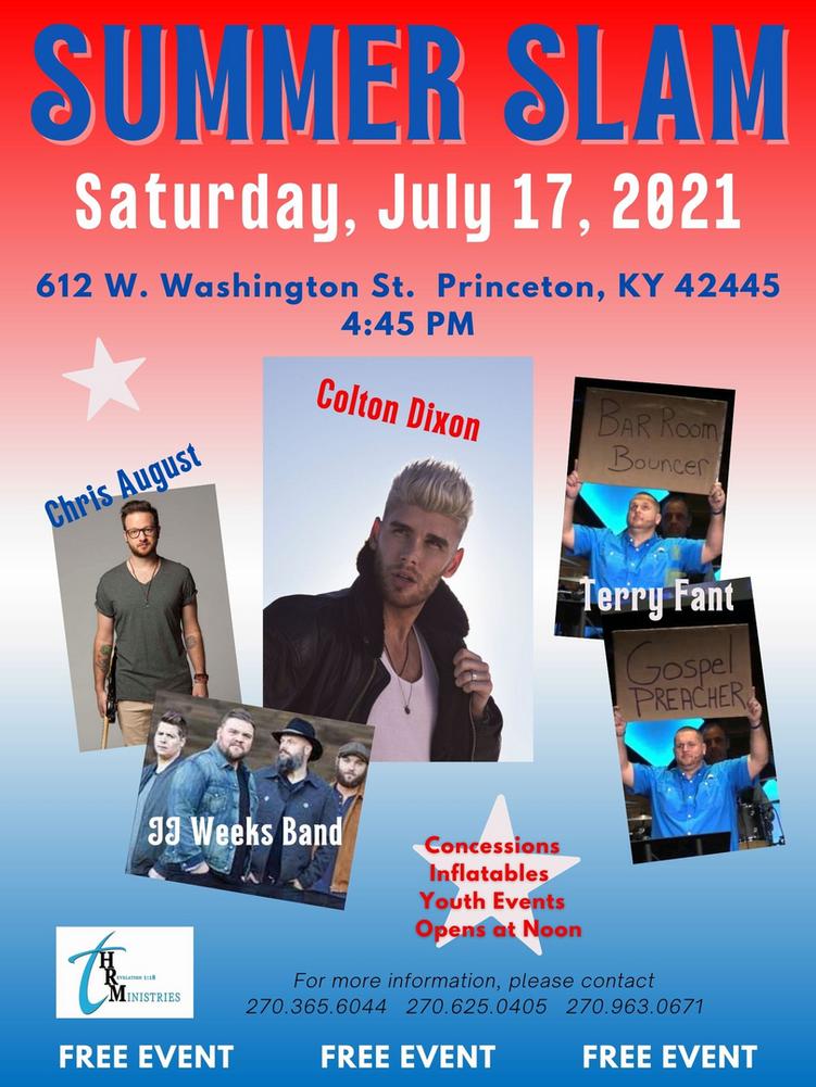 Summer Slam is a free, community event hosted by HR Ministries and sponsored by numerous local businesses. The annual event is held at Caldwell Butler Lawn. Local artists, top K-Love recording artists, and guest speakers complete the concert lineup. Daytime events extend the experience. There are inflatables for the children and youth, food vendors, local Christian radio stations, a family-friendly atmosphere, and more! A great time for everyone.