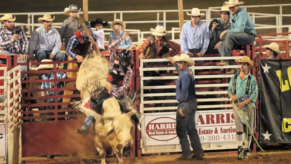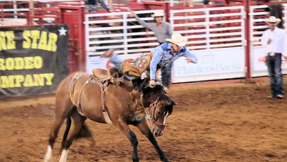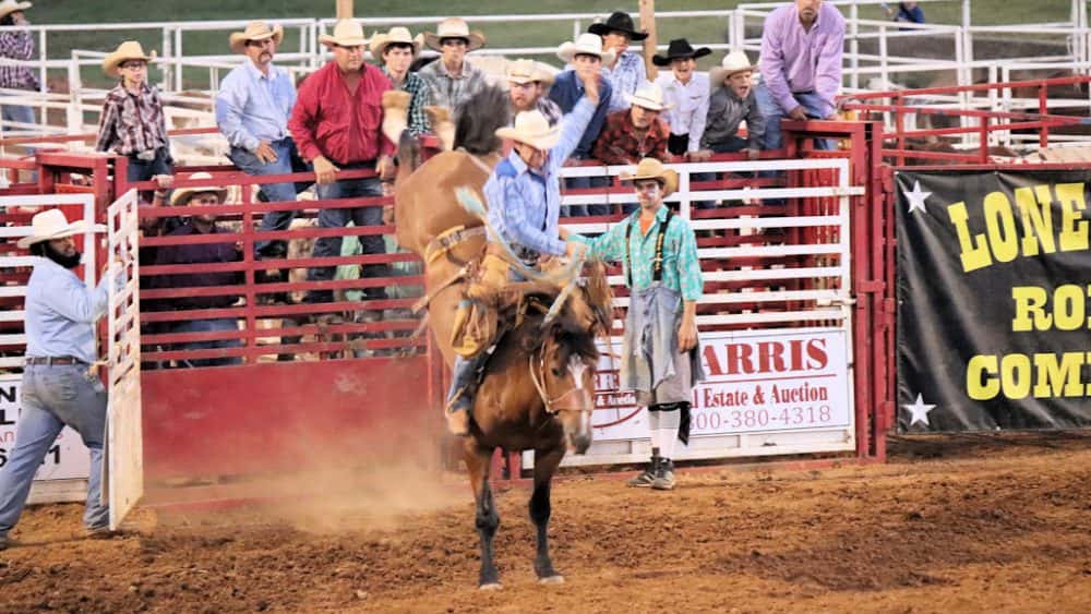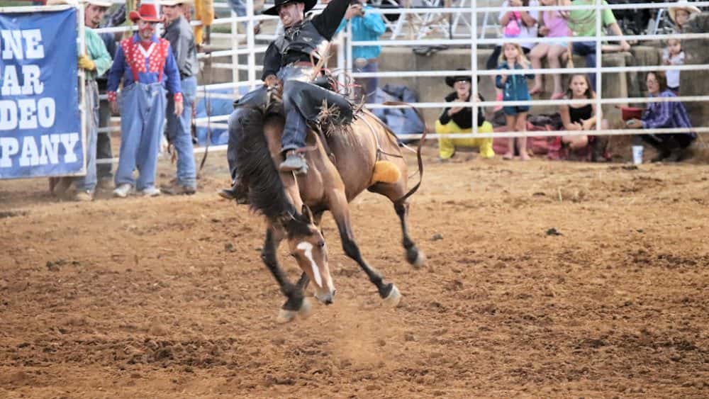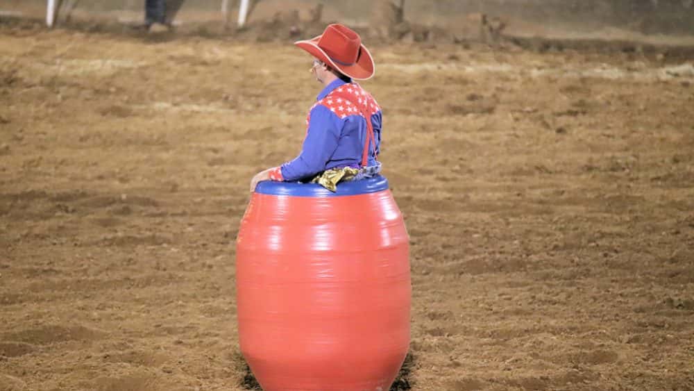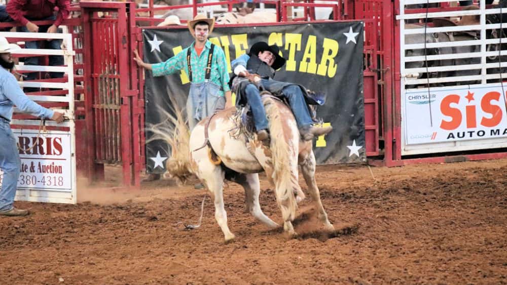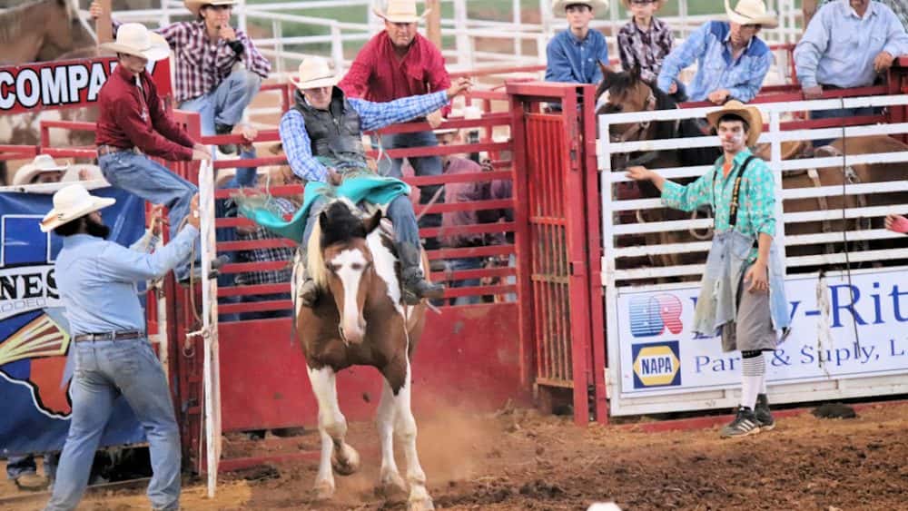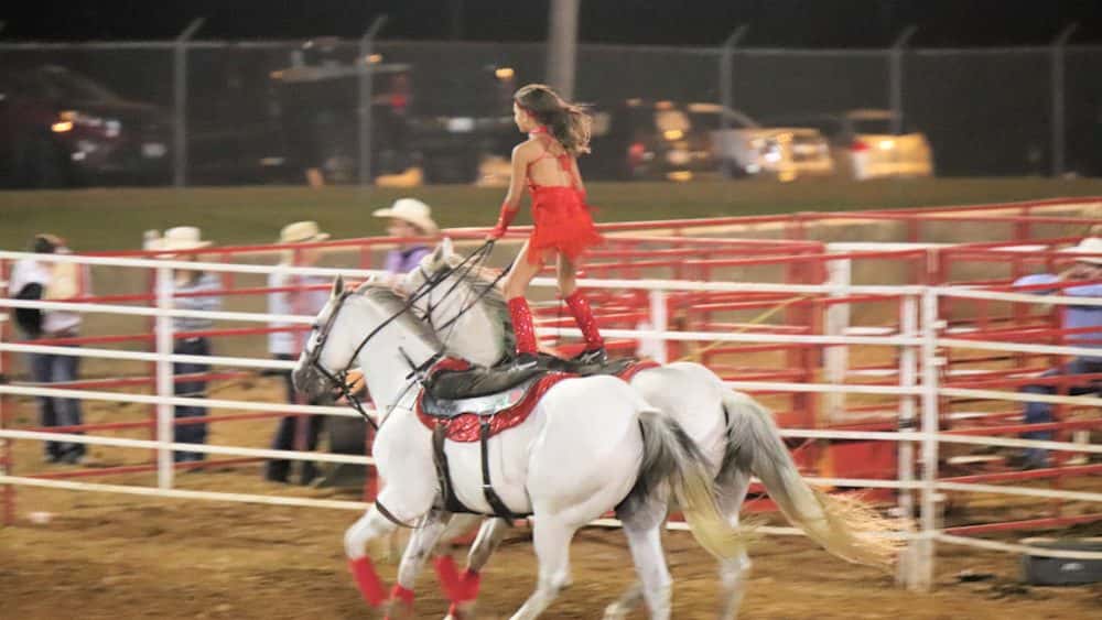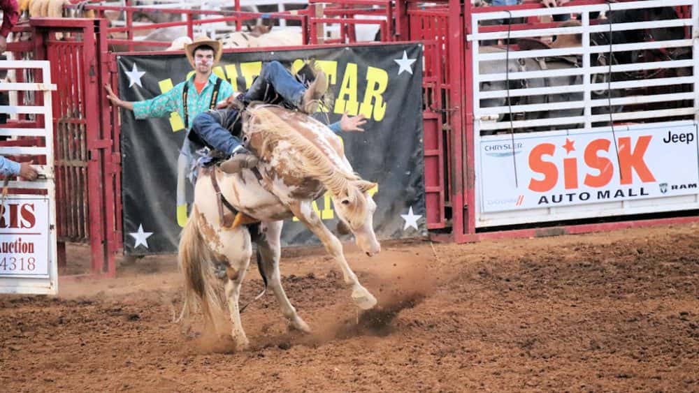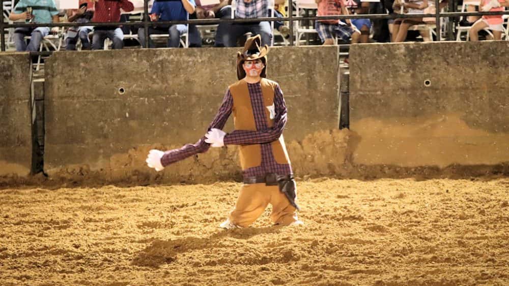 There was bull riding, bareback bronc riding and saddle bronc riding. Cowgirl barrel racing, the Gold Rush for Kids and 10 year old Ora Mae doing her tricks including Roman Riding. Mike Wentworth, the World Champion Clown was in action all night.