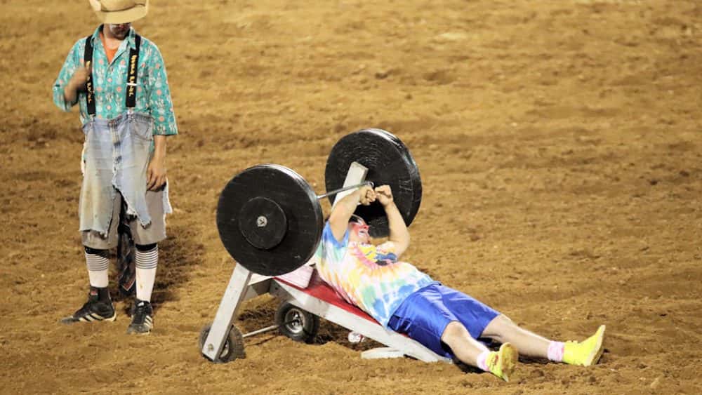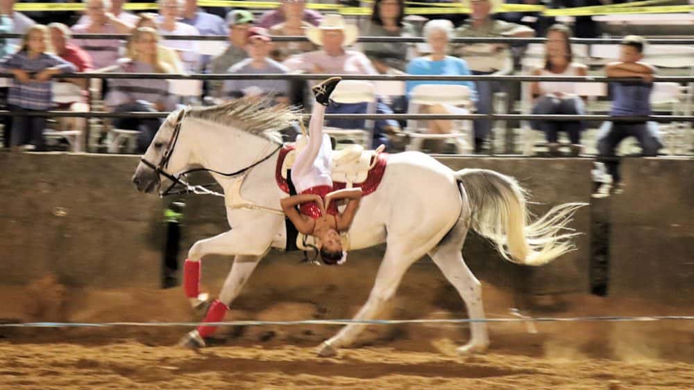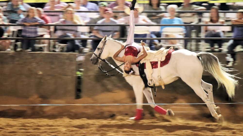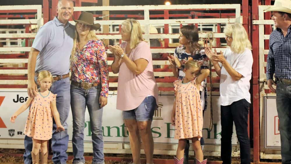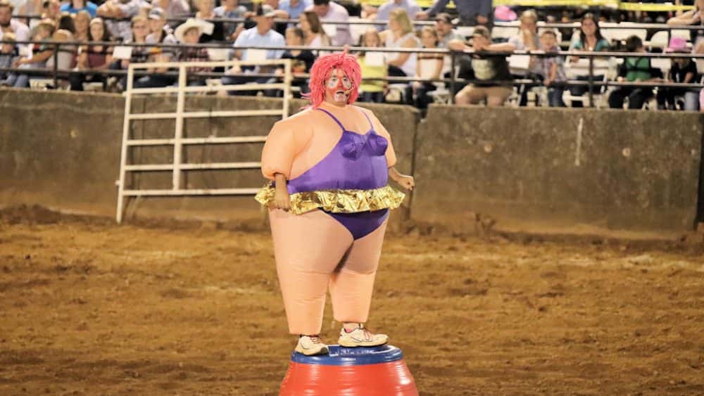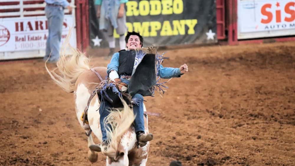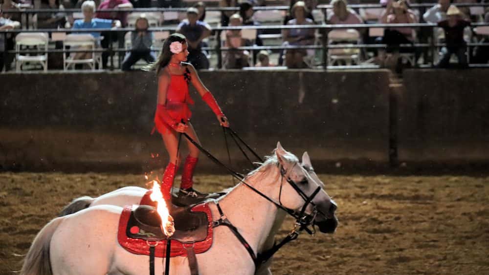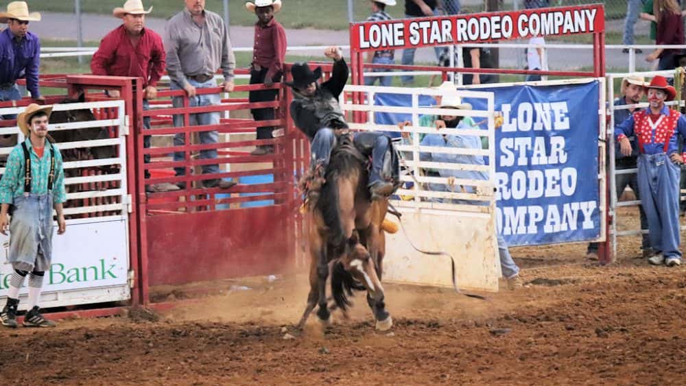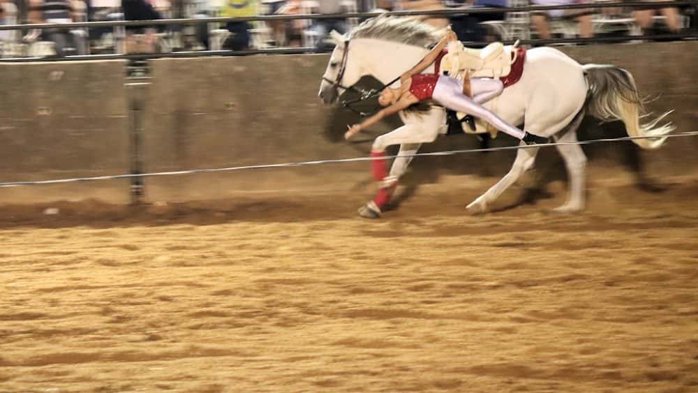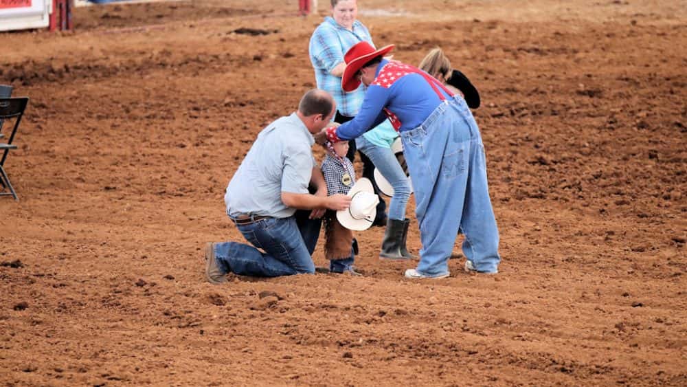 There was bull riding, bareback bronc riding and saddle bronc riding. Cowgirl barrel racing, the Gold Rush for Kids and 10 year old Ora Mae doing her tricks including Roman Riding. Mike Wentworth, the World Champion Clown was in action all night.