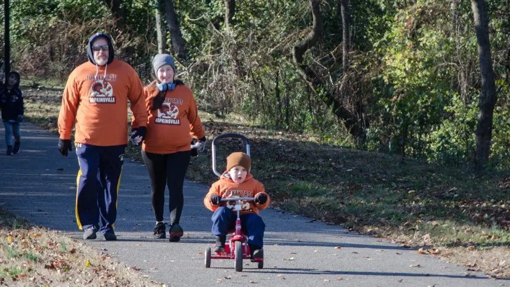 The streets of downtown Hopkinsville came to life this Thanksgiving morning as the 24th Annual Turkey Trot 5K Run/Walk stepped off at 8:00, drawing a big crowd ready to kick off the holiday with movement and good company. Hosted by Hopkinsville Parks and Recreation and supported by community sponsors, the free, non-competitive run welcomed everyone — runners, walkers, bikers, skaters and leashed dogs — for a relaxed 3.1-mile route that followed the Greenway Rail Trail and looped back to downtown. This year’s turnout continued to show just how much the Turkey Trot has become part of Thanksgiving Day for families and friends across Hopkinsville.