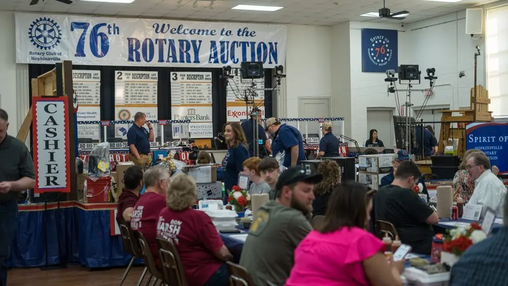 The 76th annual Hopkinsville Rotary Auction began Monday evening at the War Memorial Building, launching a six-day effort to raise money for local students and youth-focused programs.