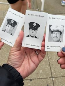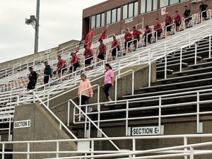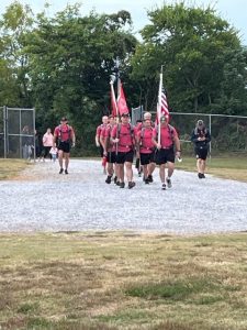 The morning began with prayer, the national anthem, and a moment of silence. Participants moved through the workout stations before finishing by cheering on firefighters during the stair climb.