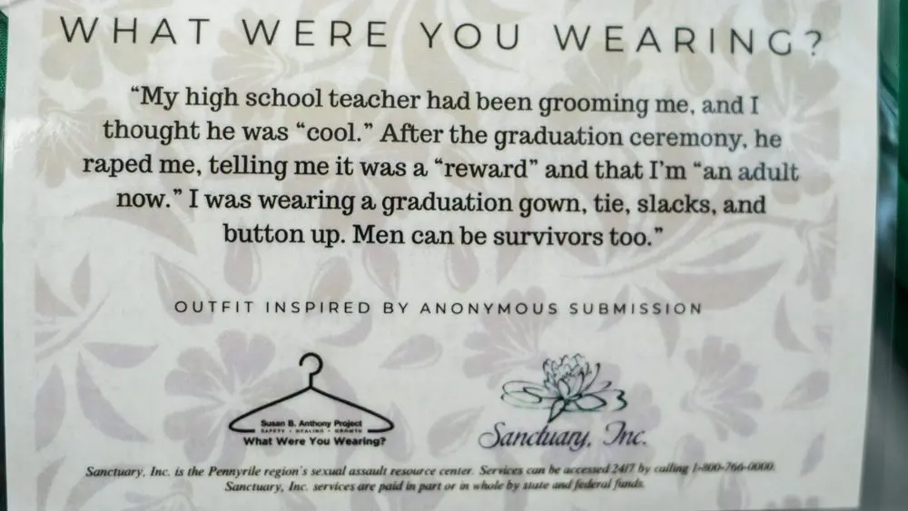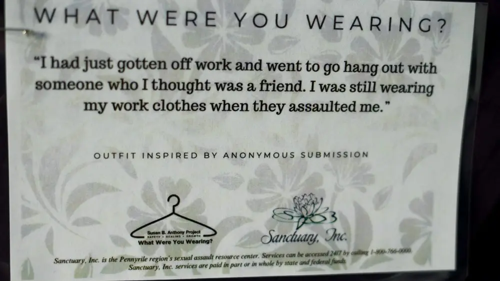 The “What Were You Wearing?” exhibit is on display this week at Hopkinsville Community College in conjunction with Sanctuary Inc. as part of Sexual Assault Awareness and Prevention Month.