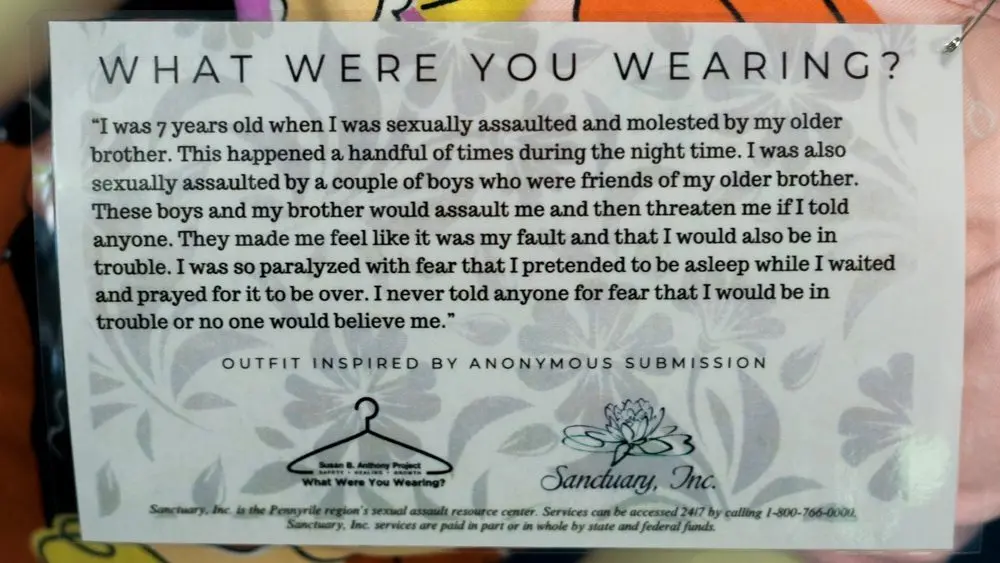 The exhibit is intentionally self-guided and presented without narration, allowing visitors to reflect quietly on the stories and the issue of victim-blaming. Organizers say the goal is to shift the focus away from what a person was wearing and toward accountability for perpetrators, while also fostering empathy and understanding.