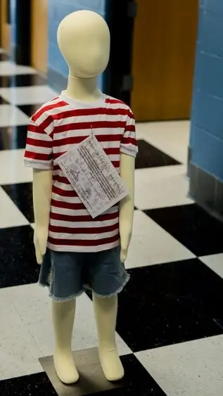 Originally created in 2013 by educators Jen Brockman and Mary Wyandt-Hiebert, the exhibit has been shown across the United States and around the world. Each display pairs clothing with brief, anonymous narratives, offering insight into survivors’ experiences while maintaining their privacy.
